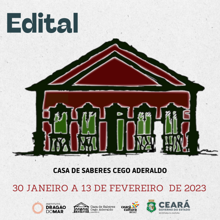 A presente chamada é uma ação da Casa de Saberes Cego Aderaldo, equipamento localizado na Rua Pascoal Crispino, 167, Centro, Quixadá-CE - espaço da Rede Pública de Equipamentos Culturais da Secretaria da Cultura do Estado do Ceará (RECE), gerido em parceria com o Instituto Dragão do Mar, pessoa jurídica de direito privado, sem fins lucrativos, inscrito no CNPJ sob o n° 02455125/0001-31, com sede na Rua Dragão do Mar, 81, Praia de Iracema, CEP 60060-390 - Fortaleza - Ceará. O presente documento visa tornar pública a chamada de contratação de serviços artísticos para compor a programação de fevereiro/23 a março/23 da Casa de Saberes Cego Aderaldo.