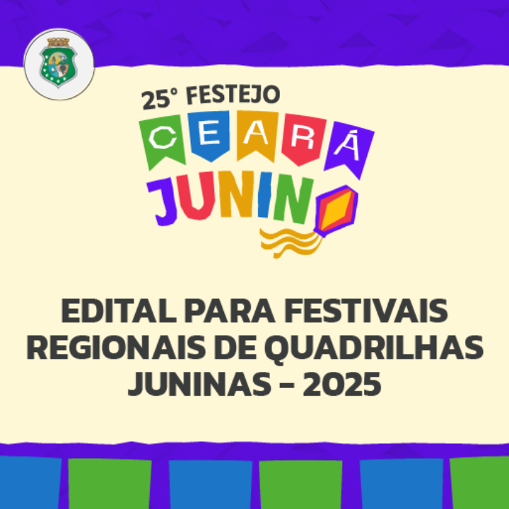 O Edital para Festivais Regionais de Quadrilhas Juninas - 2025 é uma ação consolidada da política de Patrimônio Cultural para o fomento de bens, produtos e serviços relacionados às manifestações populares do Ciclo Junino das várias regiões do Estado do Ceará. O edital tem uma função social e econômica no fomento à economia artística, criativa e cultural, considerando o grau elevado de informalidade do setor e dos trabalhadores da cultura, assumindo um papel na permanência de atividades culturais promovidas pelos atores e fazedores artísticos em nosso Estado.